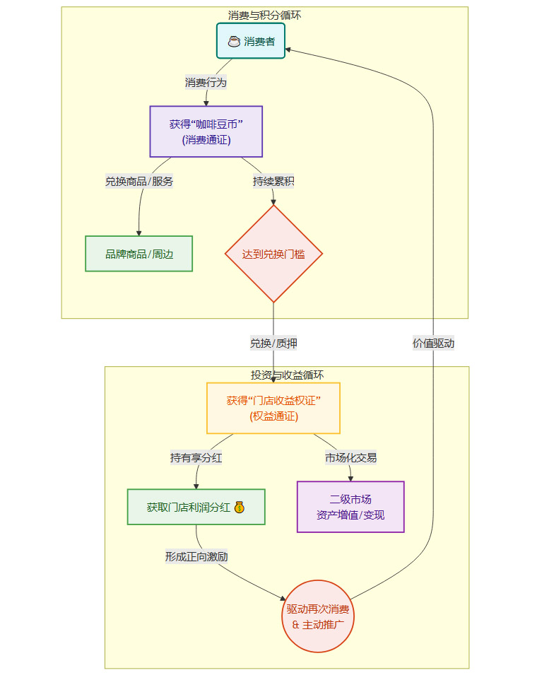 这两种通证之间存在一个兑换或质押的桥梁。用户累积的消费通证,可以用来兑换或“挖矿”获得稀缺的权益通证。这样一来,一个强大的激励闭环就形成了。