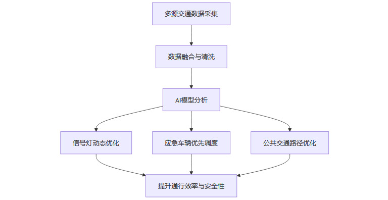 AI通过对交通流量、信号灯、应急车辆等多源数据的实时分析和动态决策,极大提升了城市交通的运行效率。例如,合肥“交通超脑”利用AI算法分析6600万条天网数据,动态调整179条主干道信号配时,通行效率提升34.5%,绿波道路覆盖率达27.56%。杭州“城市大脑”主城区通行效率提升15%以上,显著缓解了交通拥堵。