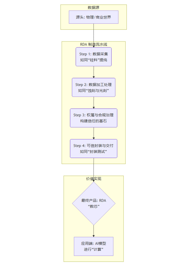 理解了“数芯”是什么以及为什么重要之后,我们还需要知道它是如何被“制造”出来的。一个非常恰当的类比,就是芯片的制造流程。从一粒沙子到一枚精密的CPU,中间经历了一系列复杂的物理和化学变化。同样,从原始的、杂乱的数据,到一枚标准化的、高价值的RDA,也需要一条精密的“工业化流水线”。