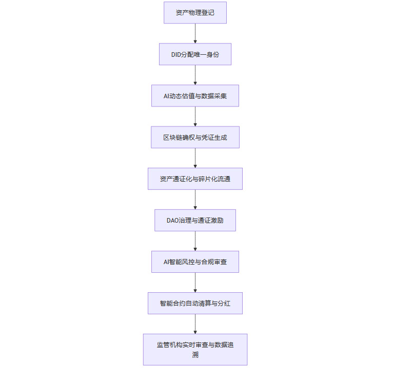 以下以Mermaid流程图形式,梳理“三体三证三权”AI协同模型下的资产数字化全流程: