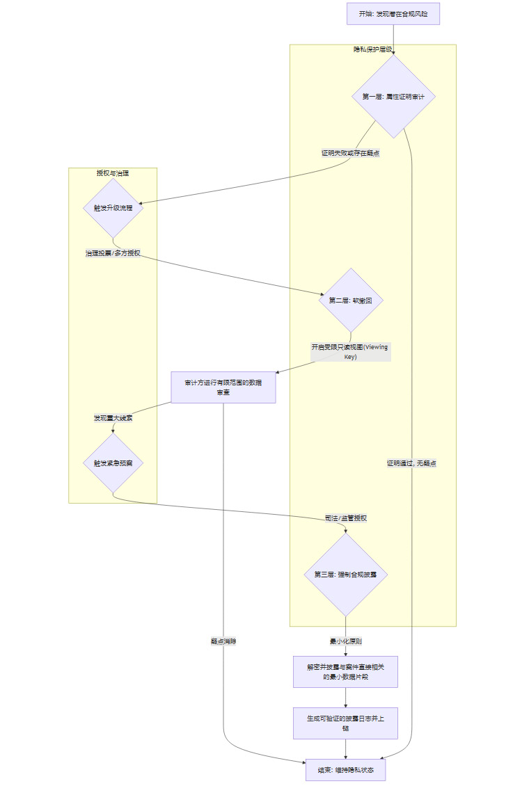在极端情况下,如涉及重大金融犯罪或国家安全威胁,系统需要一个机制来响应合法的司法或监管指令。这通常是隐私技术中最具争议、也最难设计的部分。