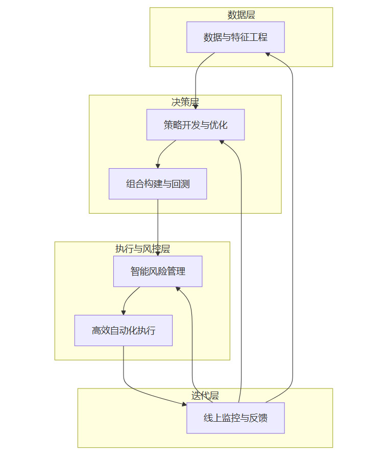 将AI成功应用于量化交易,首要任务是建立正确的认知框架。真正的壁垒不在于掌握一两种前沿的机器学习模型,而在于构建一个能够支撑模型快速迭代、风险有效管控、执行精准可靠的工程化系统。这个系统形成了一个从数据输入到最终交易反馈的完整闭含路径,确保了整个投资流程的鲁棒性与可持续性。