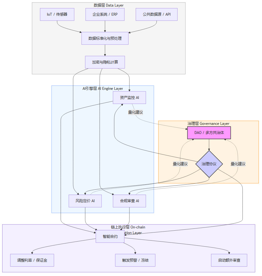💠 四、“AI共治”技术架构:从数据到链上治理的闭环