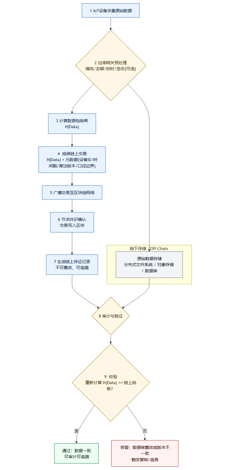 这是确保数据可信的核心环节。原始数据或其摘要信息必须在第一时间上链固证,以防止事后篡改。
