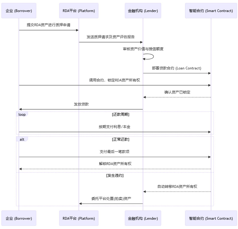 企业可以将其持有的RDA作为抵押物,向金融机构申请贷款。整个流程可以通过技术手段实现高度自动化和透明化。