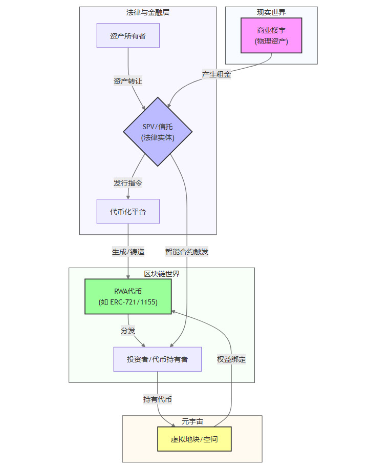 RWA与元宇宙的融合并非简单的概念拼接,其背后是一套涉及法律、金融与技术的复杂系统工程。其核心目标是确保链上数字凭证能够真实、可信、合法地代表现实资产的权益,并将其与元宇宙中的数字身份和场景无缝集成。