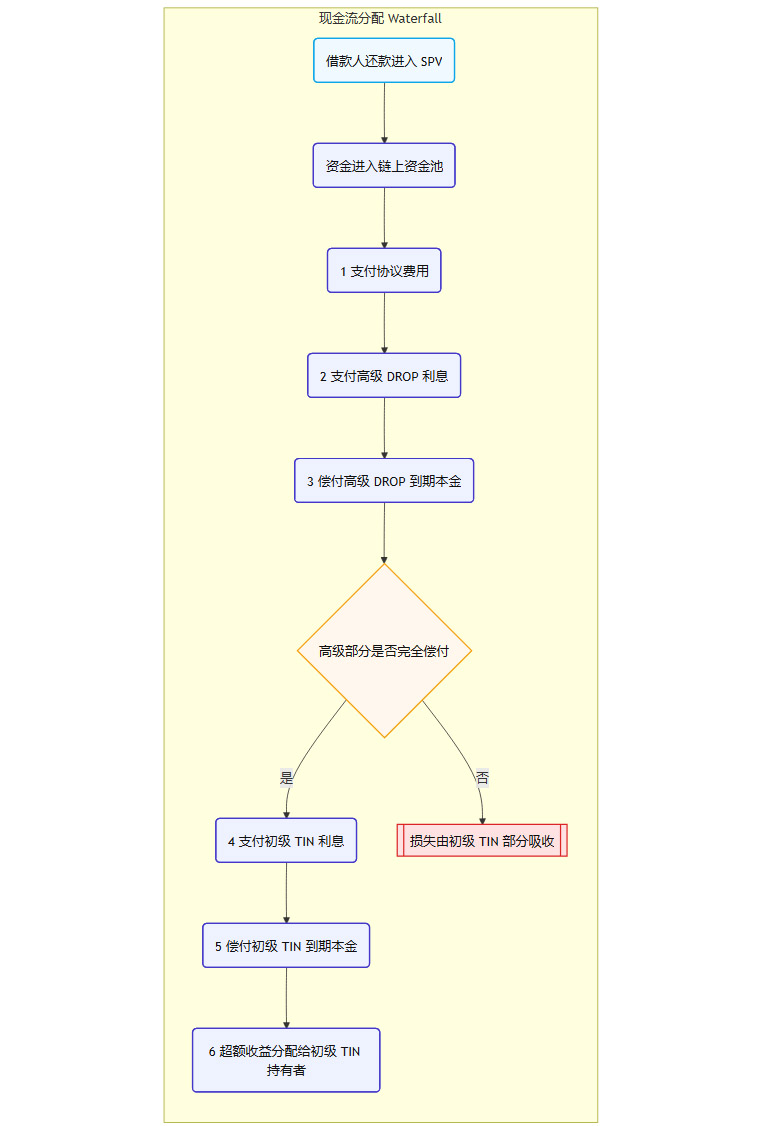 这是结构化金融的核心,被智能合约完美地自动化了。当链下SPV收到借款人的还款时,资金会汇入协议指定的托管账户,并通过预言机触发链上资金池的分配逻辑。