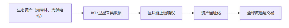 RWA的第一步是实现绿色资产的数字化确权。通过物联网(IoT)设备、卫星遥感、区块链等技术,实时采集森林、湿地、光伏电站等生态资产的碳排放与生态数据。区块链技术确保数据的真实性、不可篡改和全流程可追溯,为后续资产通证化和交易提供坚实基础。
