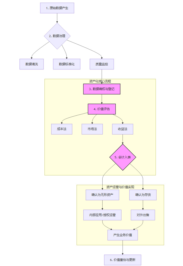 后续计量: 对已确认的数据资产进行摊销或计提减值,反映其价值随时间的变化。