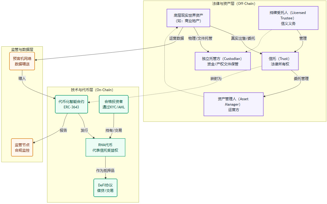 法律结构:设立一个法定信托,将底层RWA的合法所有权转移给一个持牌的、独立的受托人(Trustee)。