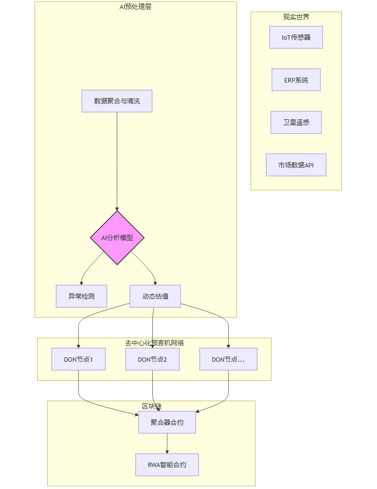 这个架构通过AI在数据源和预言机节点之间增加了一个智能处理层,极大地提升了上链数据的可信度和时效性。