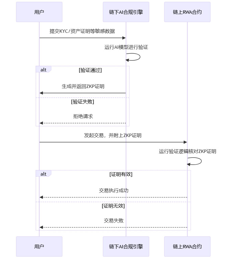 链下AI验证:资产所有者向一个受信任的链下AI合规引擎提交其身份证明(KYC)和资产所有权文件。AI引擎负责处理和验证这些原始敏感数据。