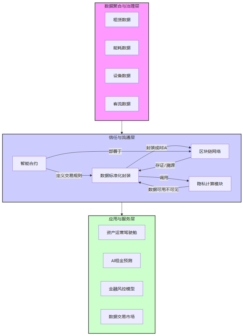 真实数据资产(Real Data Asset, RDA)的出现,为破解这一困局提供了全新的解题思路。与侧重于将物理资产所有权上链的真实世界资产(RWA)不同,RDA的核心思想是将资产在运营过程中持续产生的、可验证的动态数据流,封装成一种可信、可计量、可流通的新型数字资产。这不仅是对楼宇的一次“数字化”,更是对其运营生命体征的实时、深度刻画。本文将从技术架构、应用实践、风险管控等维度,系统性地剖析RDA如何重塑房地产资产管理,并探讨其未来的发展路径与行业影响。