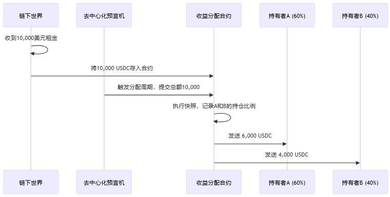 自动分配:预言机将本期可分配的总租金数据提交给合约后,合约会根据快照结果,按比例自动将稳定币分发到每个持有者的钱包地址。整个过程无需人工干预,公开透明,可随时在区块链浏览器上查验。