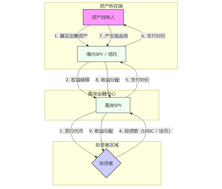 一个简化的RWA跨境融资架构可以用下面的流程图来表示。