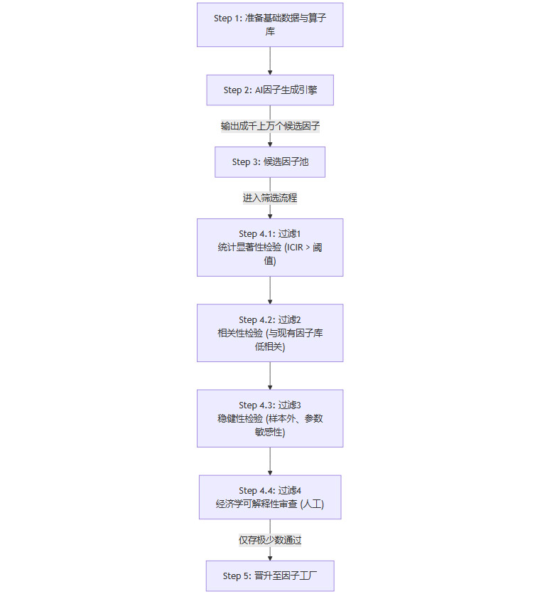 需要强调的是,AI生成的因子并非开箱即用的“圣杯”。它们只是“候选人”,必须经过一个比人类因子更严格的筛选流程,因为AI可能会发现一些虚假的、无法解释的统计关系。